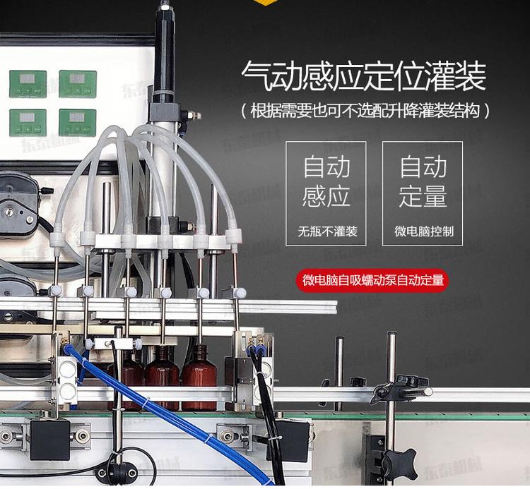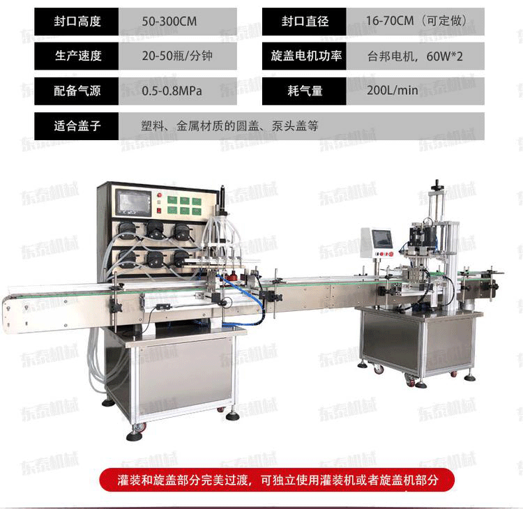 消毒水液體灌裝旋蓋線是我司在吸收先進(jìn)技術(shù)的基礎(chǔ)上研發(fā)的一款新型自動(dòng)生產(chǎn)線,特別適用于中小劑量液體灌裝和各種圓形瓶蓋,泵頭蓋,噴頭蓋,鴨嘴蓋,噴槍的鎖蓋。同時(shí)適用各種材質(zhì)圓形、異形瓶,各種規(guī)格的瓶子灌裝旋蓋。微電腦自吸蠕動(dòng)泵自動(dòng)定量、氣動(dòng)感應(yīng)定位灌裝(根據(jù)需要也可不選配升降灌裝結(jié)構(gòu))等。具有計(jì)量精準(zhǔn)、灌裝平穩(wěn)、操作簡(jiǎn)單、高速分裝、旋蓋等優(yōu)點(diǎn)。廣泛應(yīng)用于醫(yī)藥、日化、飲料,酒水等行業(yè)