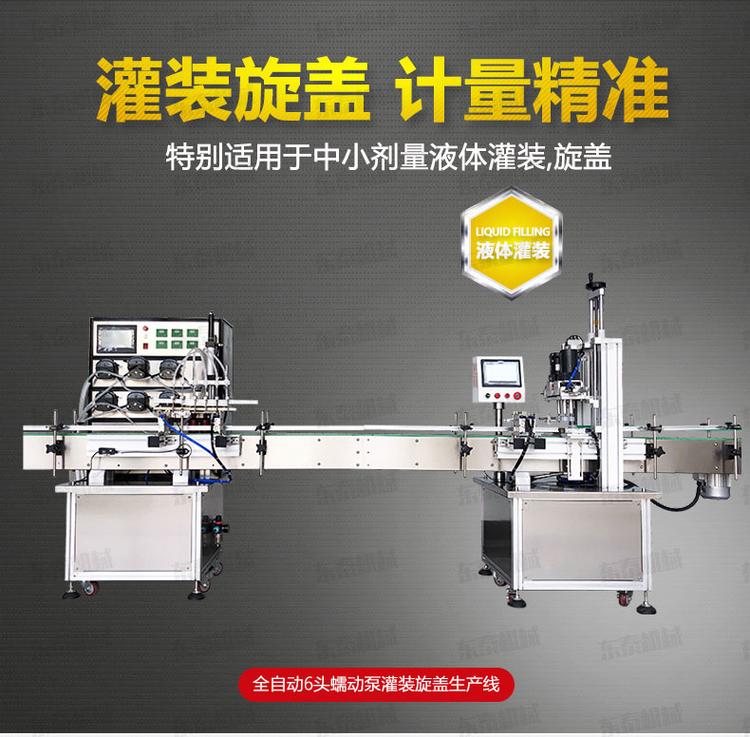 該消毒水液體灌裝旋蓋線適用于食用油,果汁,飲料,礦泉水,牛奶,口服液,煙油,滴眼液,精油,化妝水,藥油,膠水,酸奶,墨水,糖漿,葡萄酒,黃酒,米酒等定量灌裝和封蓋,自動(dòng)化生產(chǎn),大大提升效率,節(jié)省人力成本。