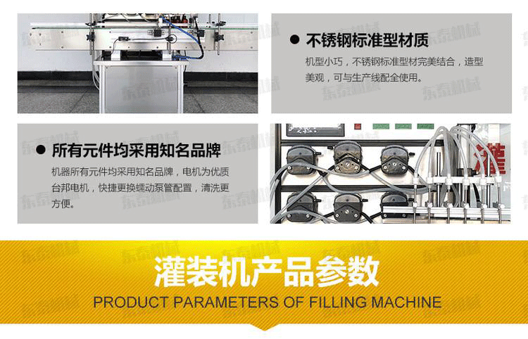 1、消毒水液體灌裝旋蓋線所有元件均采用,電機(jī)為優(yōu)質(zhì)臺(tái)邦電機(jī),快捷更換蠕動(dòng)泵管配置,清洗更方便。機(jī)身為鋁合金+不銹鋼。本機(jī)操作簡(jiǎn)單、直觀方便,自動(dòng)感應(yīng),無(wú)瓶不灌裝,灌裝和旋蓋部分過(guò)渡,可獨(dú)立使用灌裝機(jī)或者旋蓋機(jī)部分,另旋蓋機(jī)標(biāo)配自動(dòng)分瓶功能,方便小瓶旋蓋,性能穩(wěn)定,可靠,效率高。